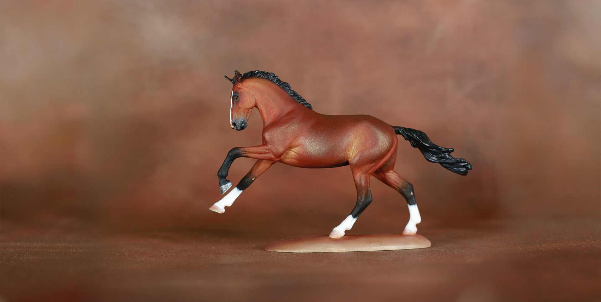 Hazel here was my very first commission and was a complete labor of love. I did not skim on giving her that glow factor and she has done very well for herself in the show arena! Collecting quite a collection of NAN cards in both breed and workmanship during her inaugural year in the arena, placing first in her class in the Resin Futurity and collecting several ribbons and rosettes accross. It warms my heart to see my creations do so well for their owners and bring joy all around.
