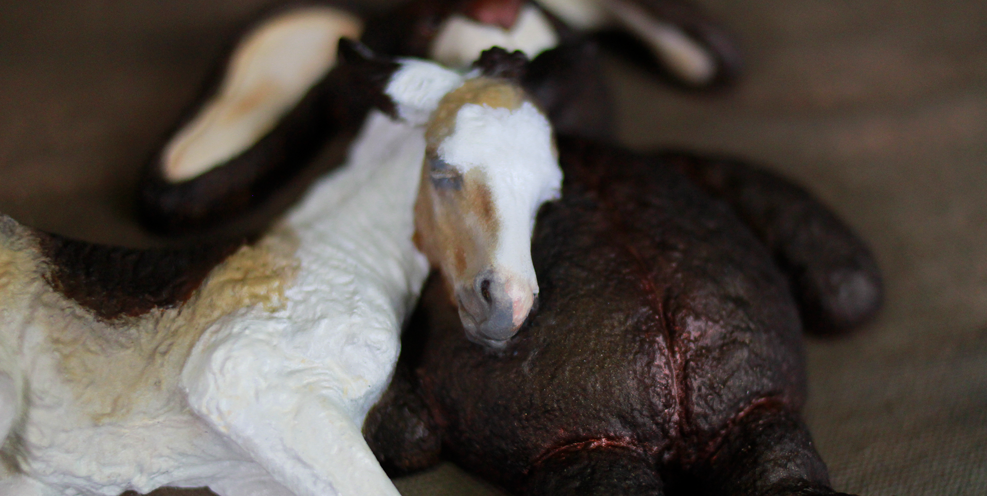 Looks like someone wore himself out in the field! Sure is tough being that cute. Good thing his has his cuddly rabbit to keep him company for naptime. Don't be fooled by the sleeping beauty, he will be up in 30 minutes ready to do it all over again. Truman and his bunny are painted lovingly in oils, with touches of acrylics in his whites, bunny's eyes, and bunny even has touches of pastels in his ears. Bunny has a high gloss varnish on his eyes and both are sprayed with a high quality finishing sealant.