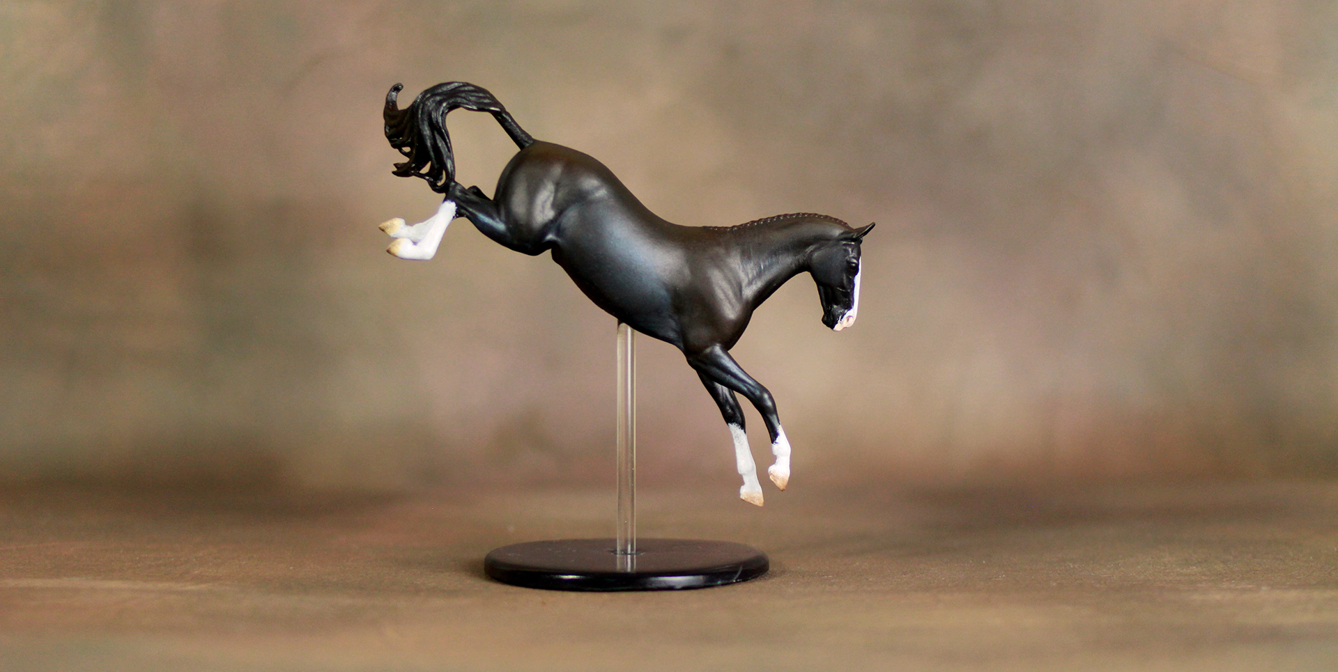 This exquisite little jumper resin was just begging to be painted black with all whites. They just shine in the arena. UpBity has been painted with shimmery blues, browns (after all he has been in the sun a bit) and blacks to help deepen the richness of his coat.